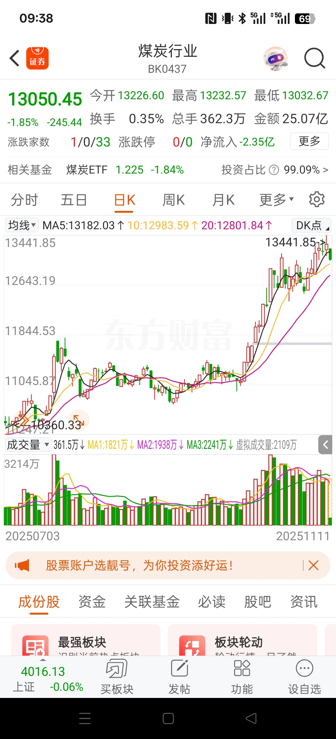 煤炭板块短时间涨幅巨大,今日回头!广汇能源跟多少呢?