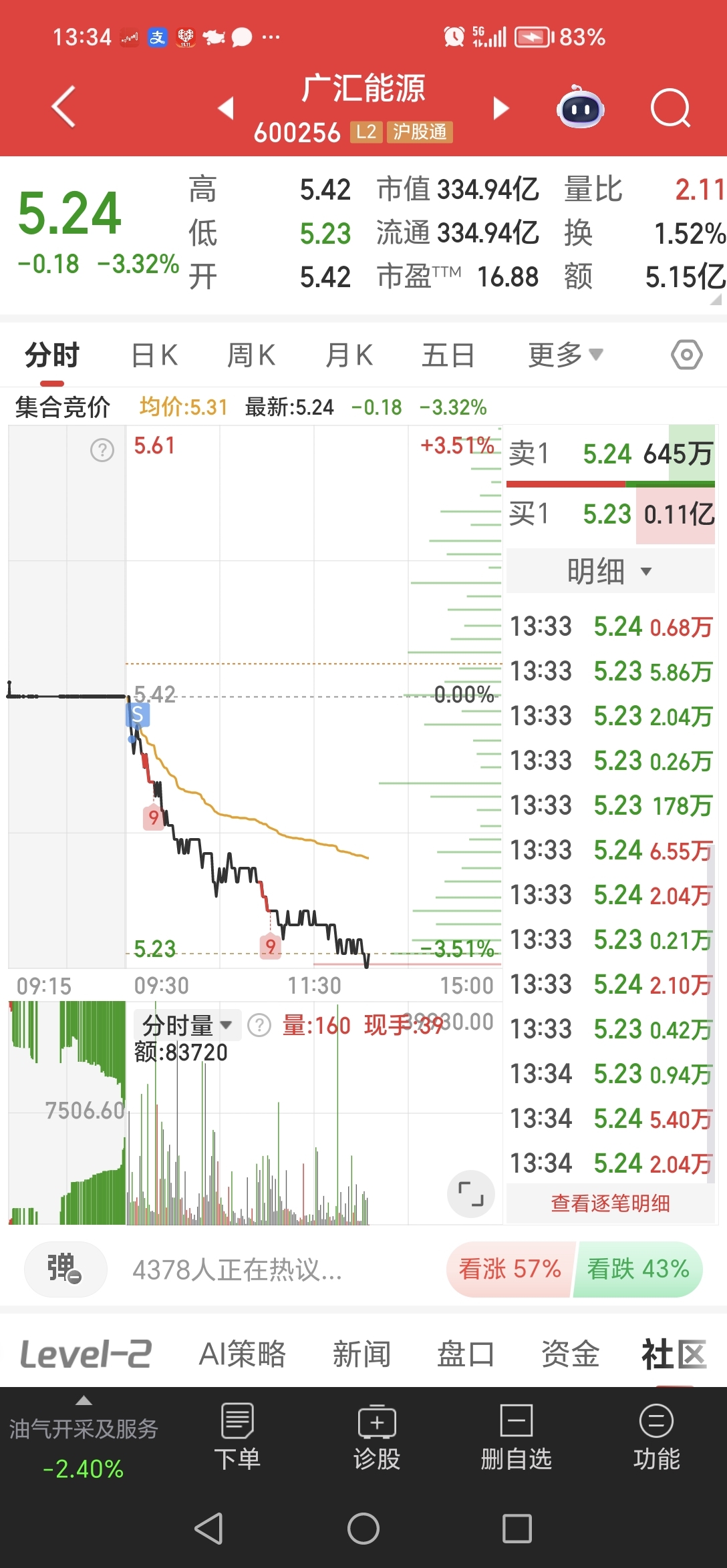 $广汇能源(SH600256)$ 开盘跑了