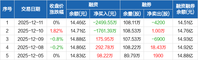 广汇能源:融资净偿还2499.55万元,融资余额14.46亿元(12-11)