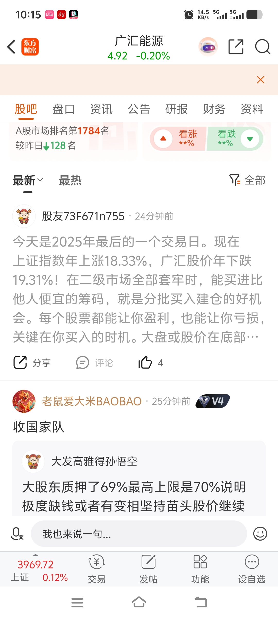 温馨提示: 1.根据《证券法》规定,禁止编造、传播虚假信息或者误导性信息,扰乱证券市场;2.用户在本社区发表的所有资料、言论等仅代表个人观点,与本网站立场无关,不对您构成任何投资建议。用户应基于自己的独立判断,自行决定证券投资并承担相应风险。《东方财富社区管理规定》