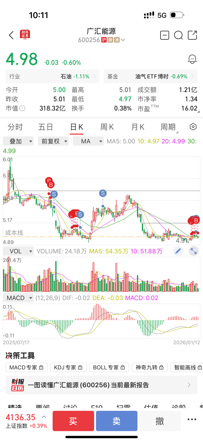 $广汇能源(SH600256)$ 进进出出好几次没赚钱也没亏钱,这股难受