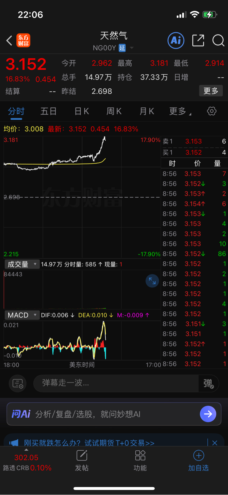 $广汇能源(SH600256)$ 美国天然气涨20%