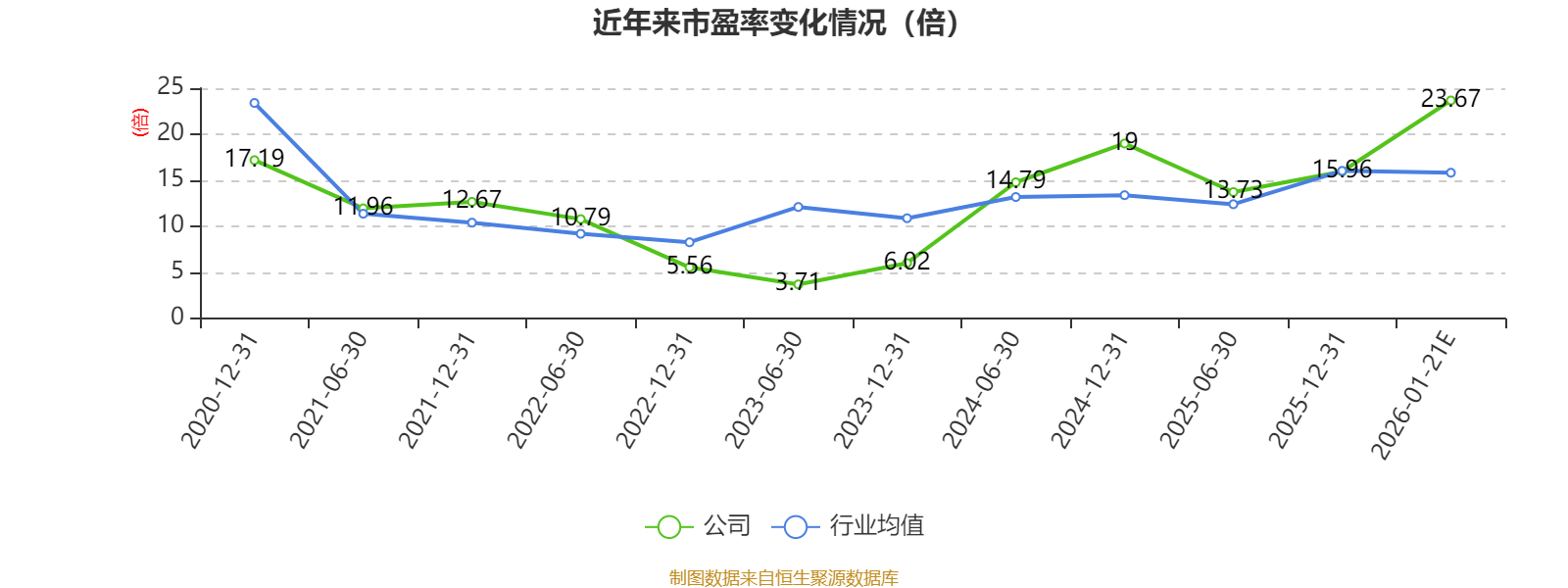 以本次披露业绩预告均值计算,公司近年市盈率(TTM)图如下所示: