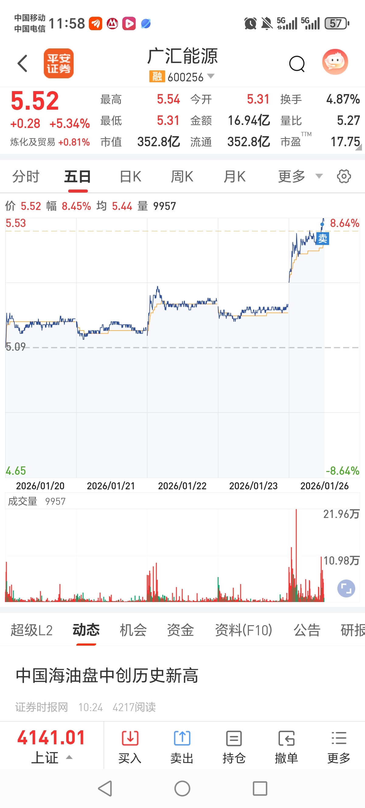 $广汇能源(SH600256)$ 我胆小,赚6000走了