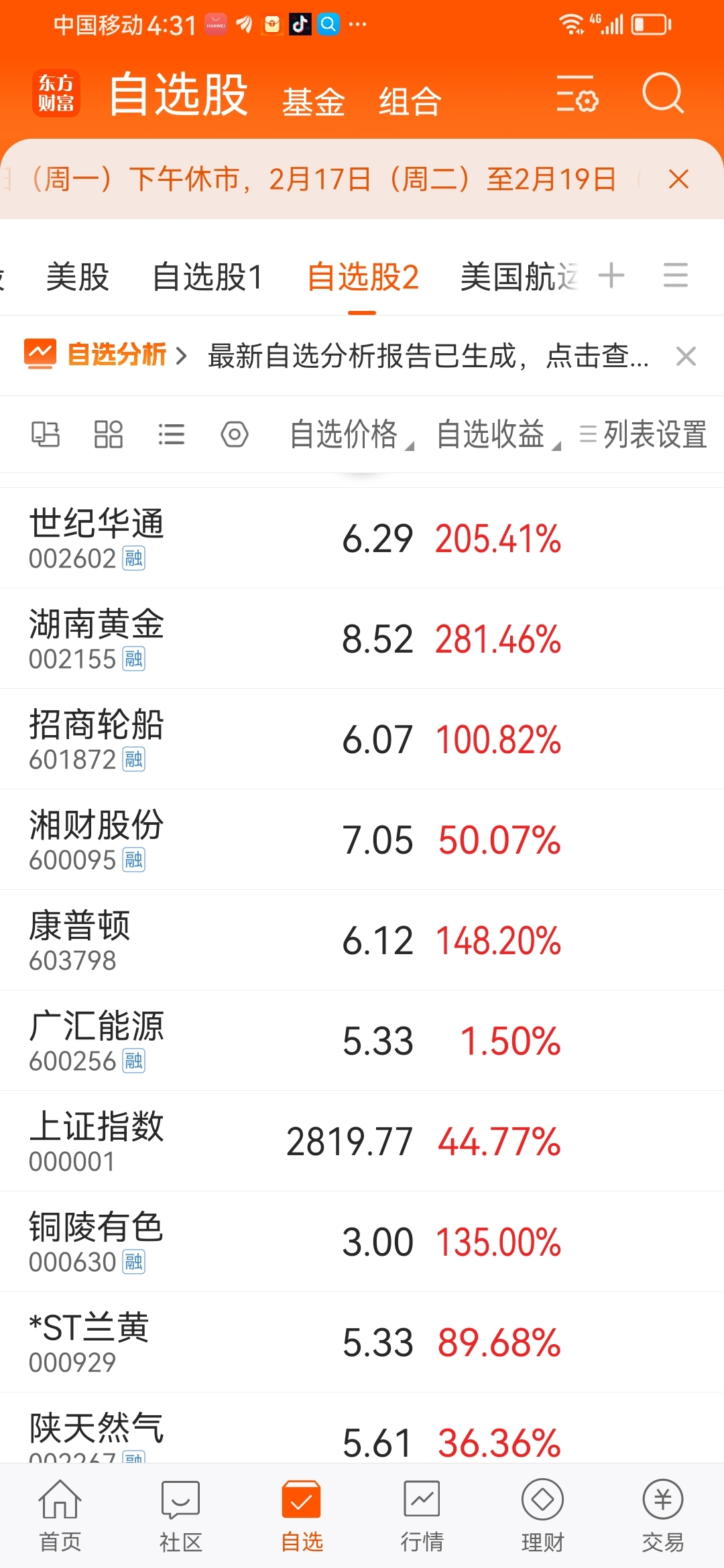一年收官,广汇录得自选倒一,永低于倒二陕天然气,广汇选股出了什么问题!?