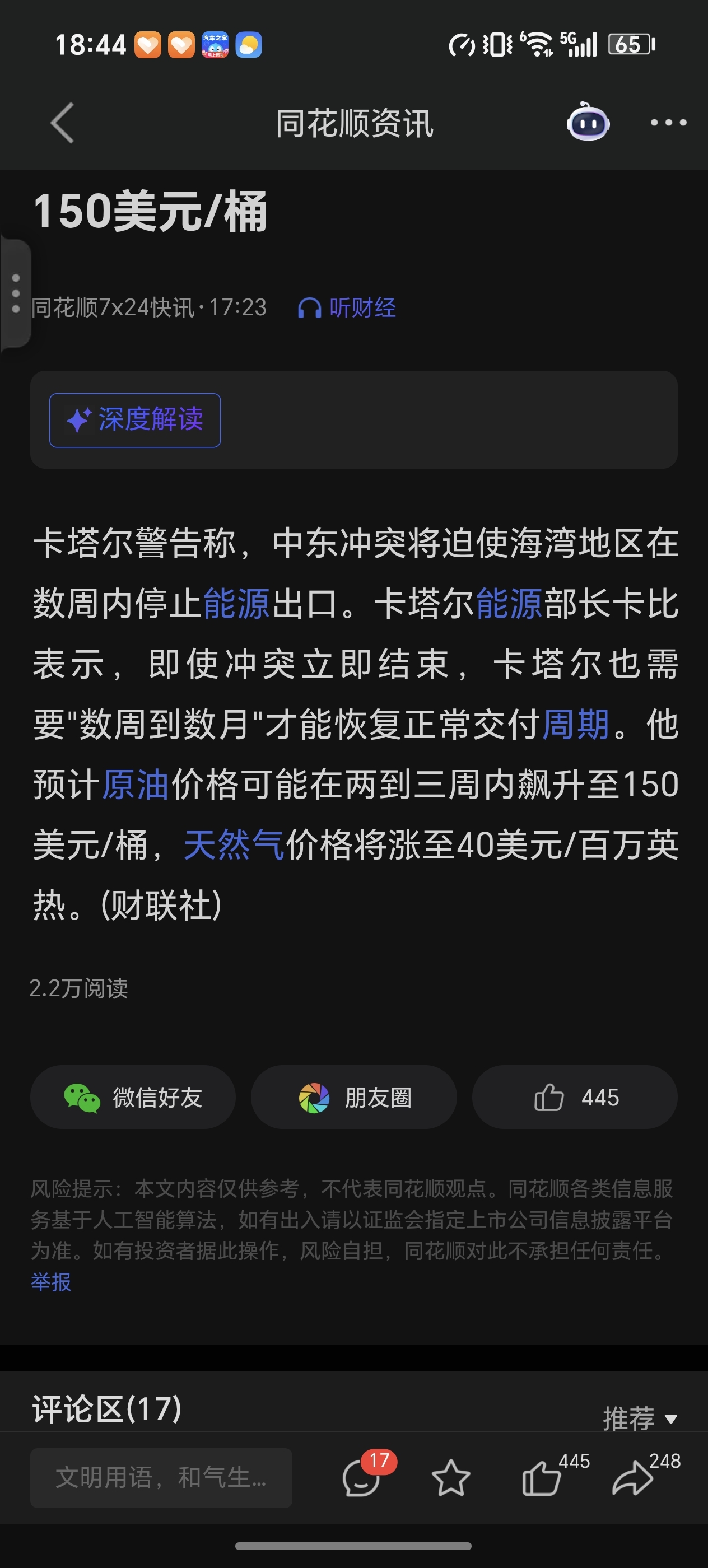 $广汇能源(SH600256)$ 石油预计涨到150美元一桶就是100%,这点涨幅算什么,天然气涨10倍啊