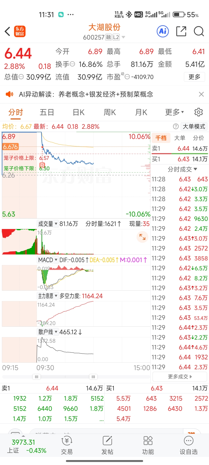 $大湖股份(SH600257)$ 能跑就跑吧,今天老庄出货了,别去接盘,没格局的货