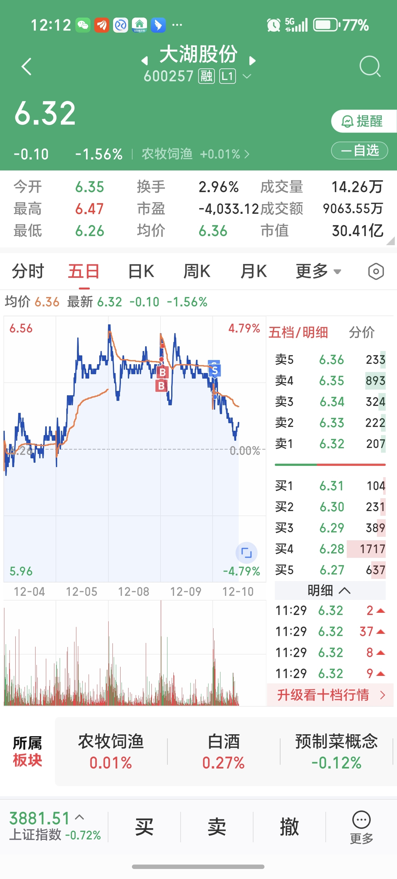 $大湖股份(SH600257)$ 我走了,留下五年虾钱