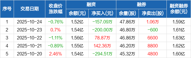 首旅酒店:融资净偿还157.09万元,融资余额1.52亿元(10-24)