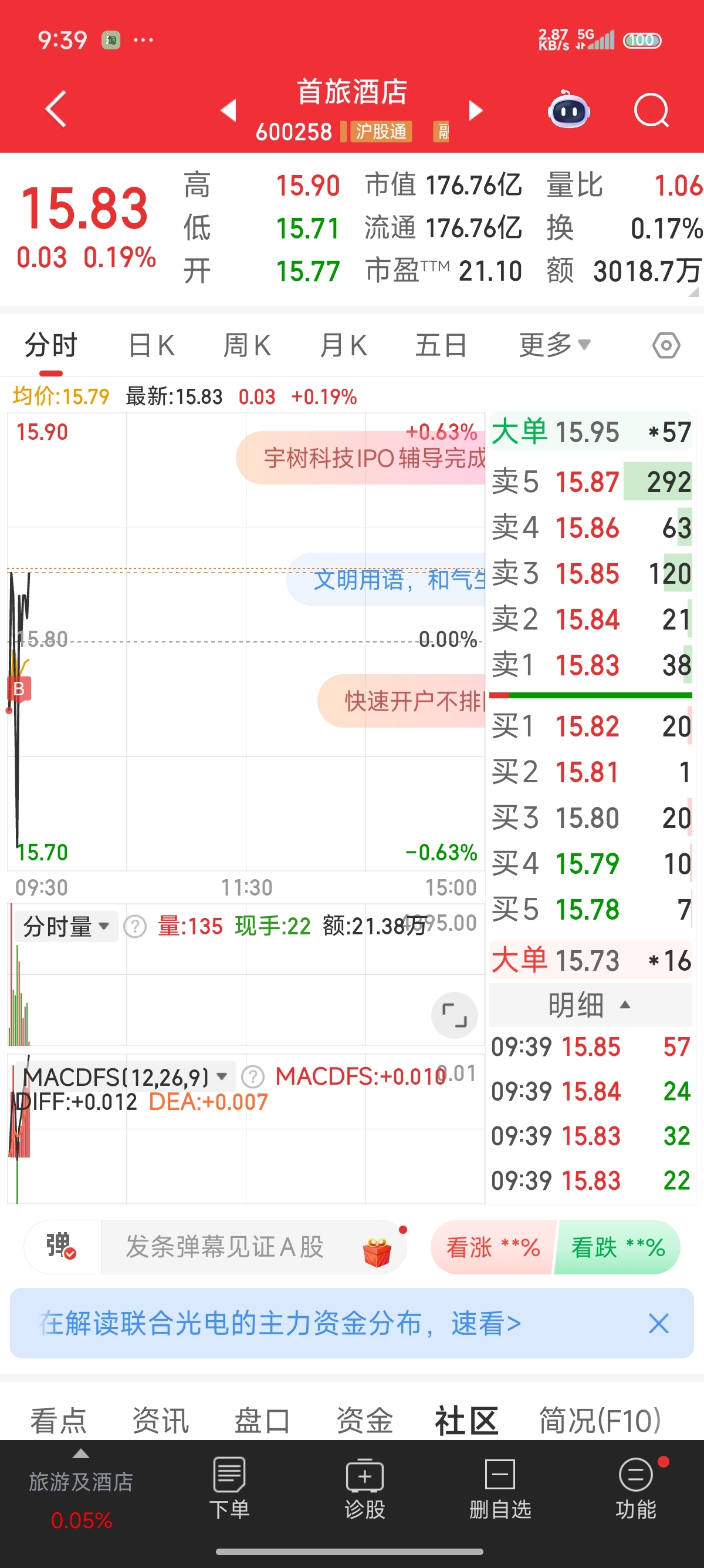 $首旅酒店(SH600258)$ 加了点仓!