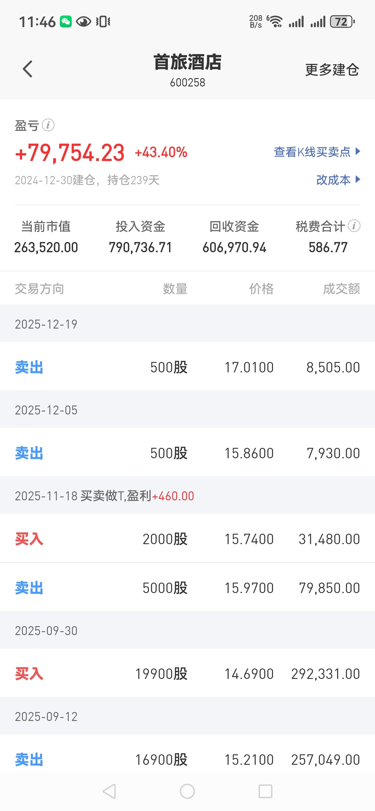 $首旅酒店(SH600258)$ 马上就赚8万了,在加把劲