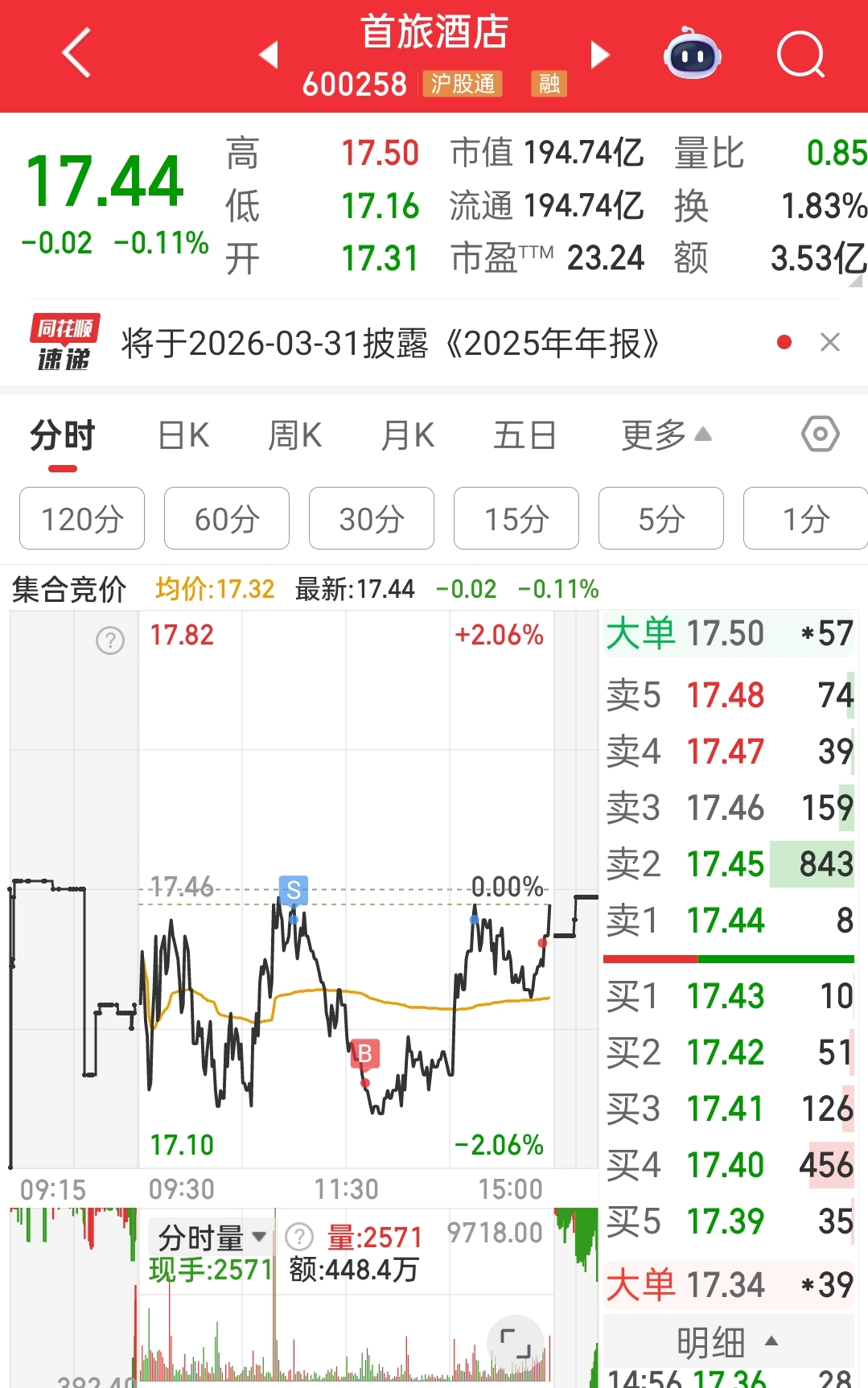 $首旅酒店(SH600258)$ 这个波动太小了,费劲巴拉,做个两个t,才保证保证了小赚