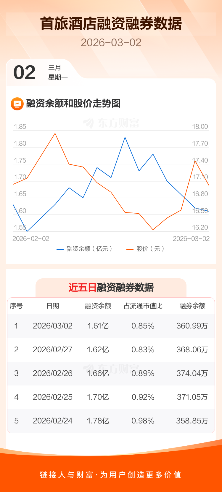交易所最新数据显示,首旅酒店于2026年3月2日获融资买入1381.24万元,融资偿还1521.82万元,当日融资净偿还140.57万元。目前,该股融资余额1.61亿,占流通市值比例为0.85%。