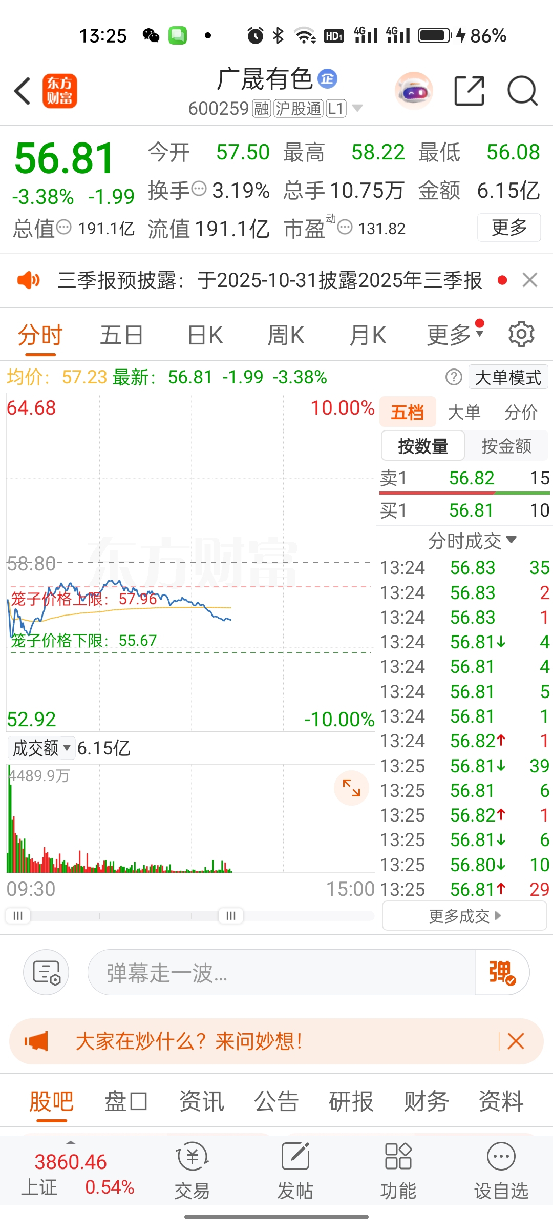 广晟有色,今天早盘56.06附近有短线资金进场炒底了,很可...