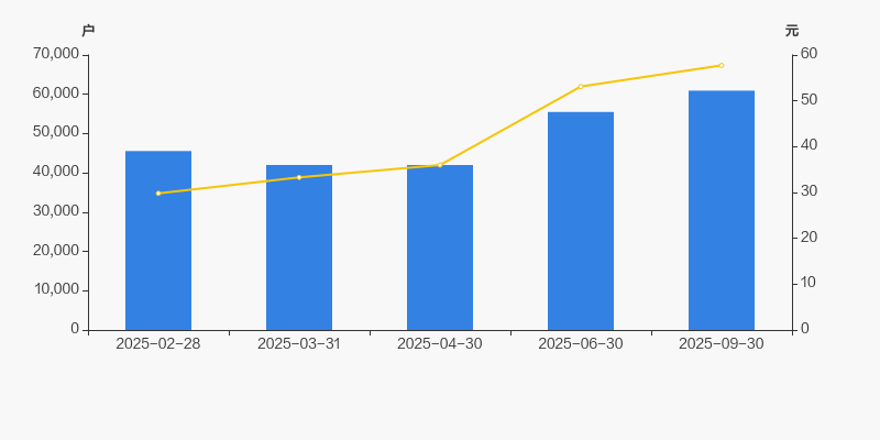 2025年2月28日至今,公司股东户数显著增长,区间涨幅为33.75%。2025年2月28日至2025年9月30日区间股价上涨93.69%。