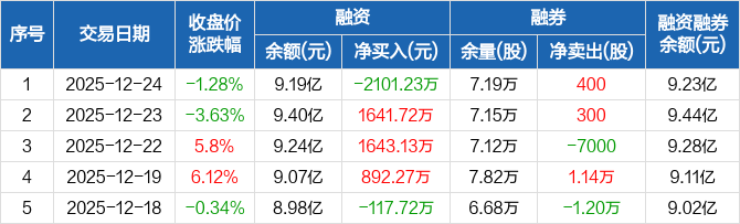广晟有色:融资净偿还2101.23万元,融资余额9.19亿元(12-24)
