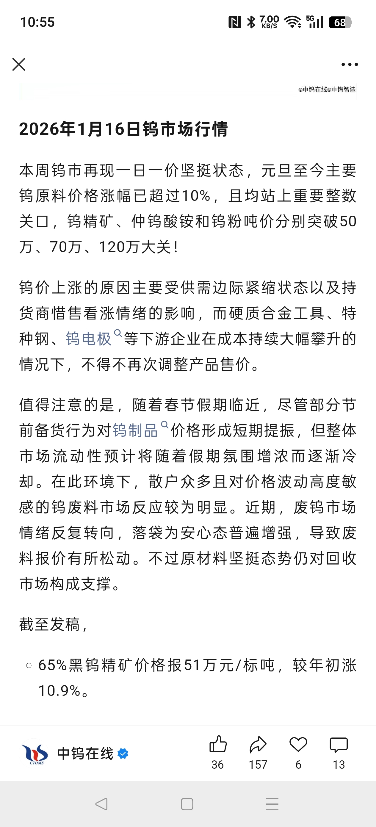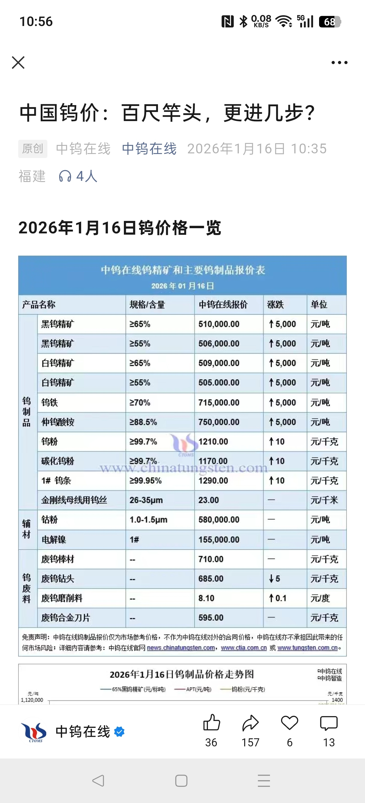 今天钨价