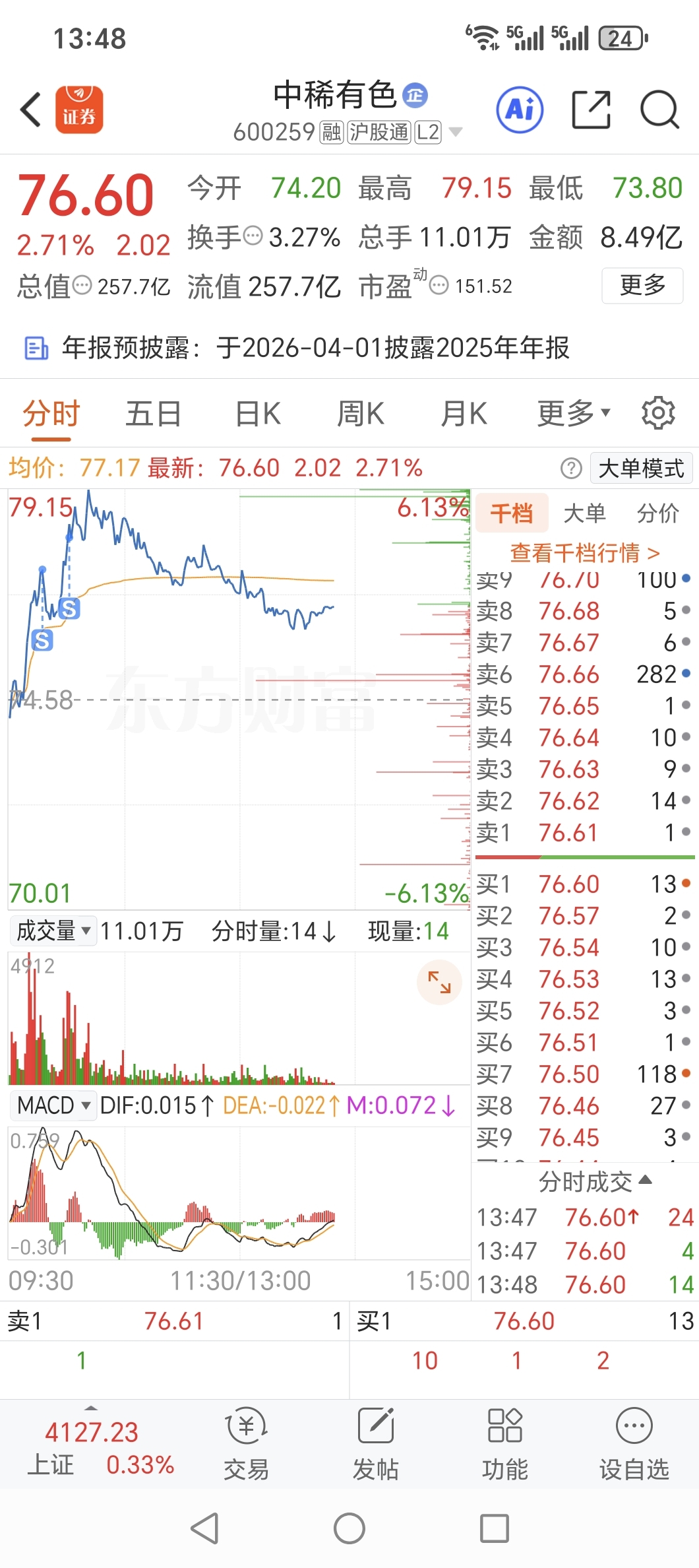$中稀有色(SH600259)$ 冲高就卖卖,确实要回落,再等等。吼吼吼!