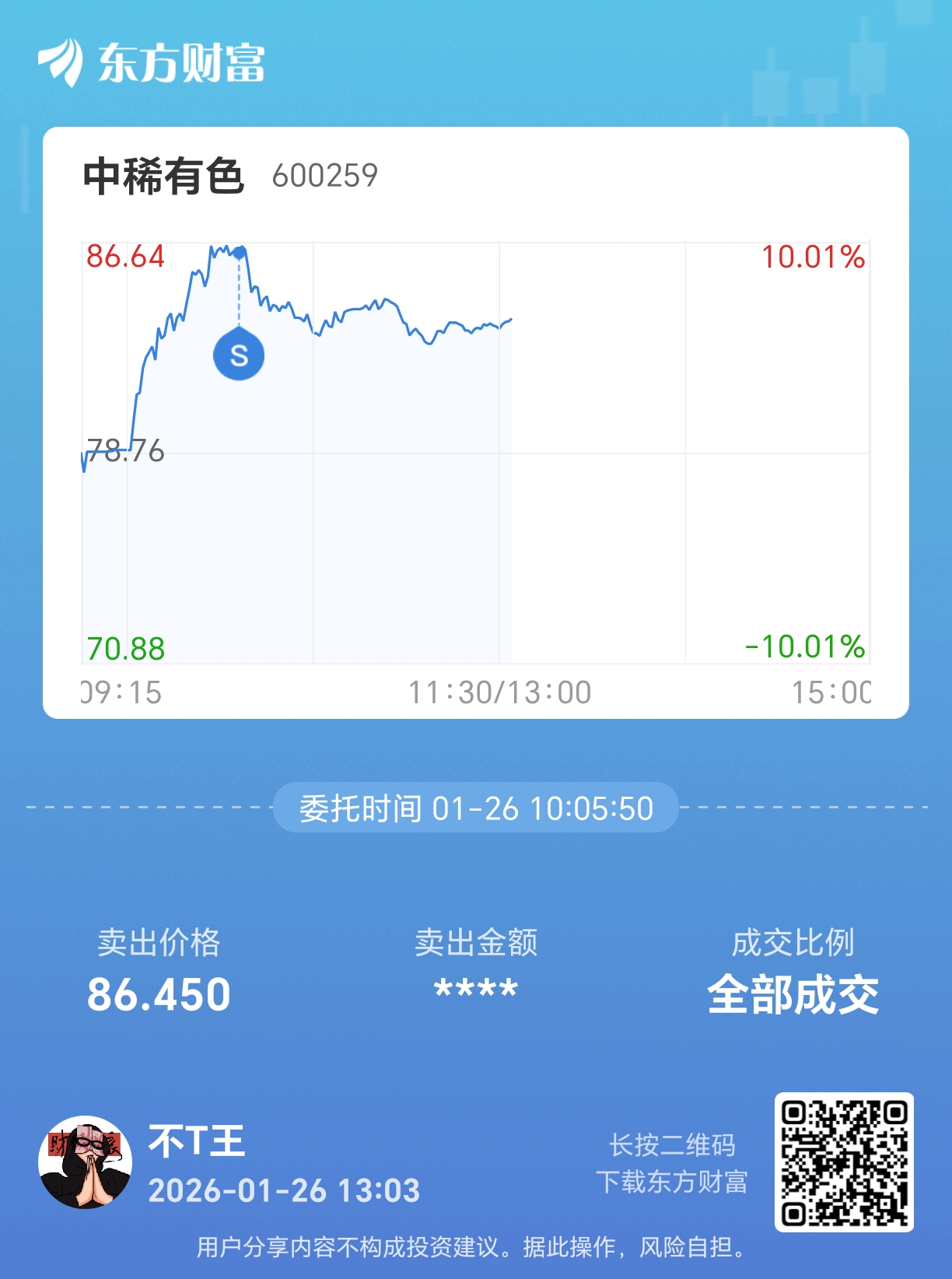 $中稀有色(SH600259)$ 9.7走的 留下的发财