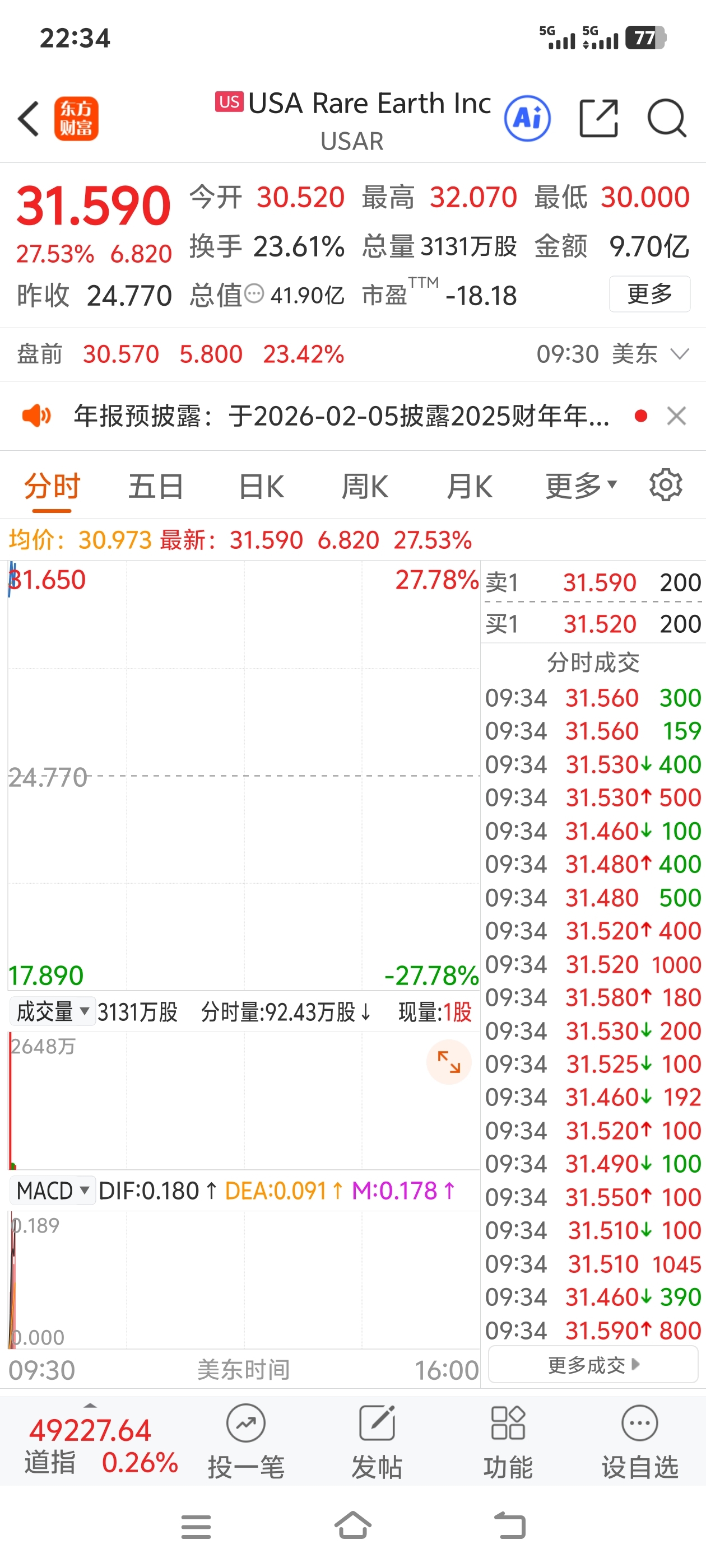 $中稀有色(SH600259)$ 美国的稀土公司大涨,让你们开开眼。