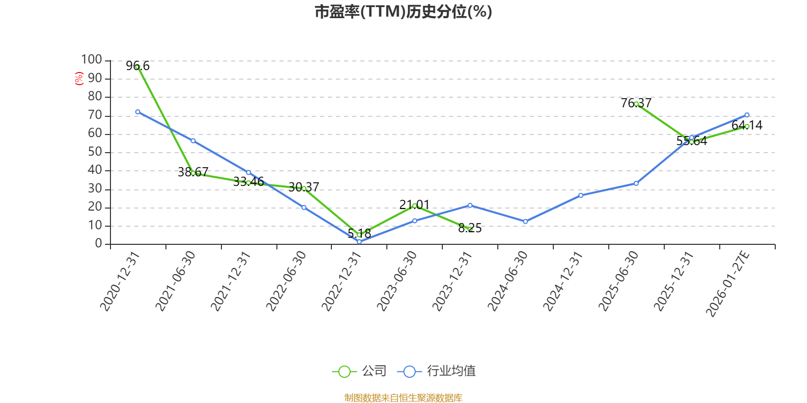 以本次披露业绩预告均值计算,公司近年市盈率(TTM)图如下所示: