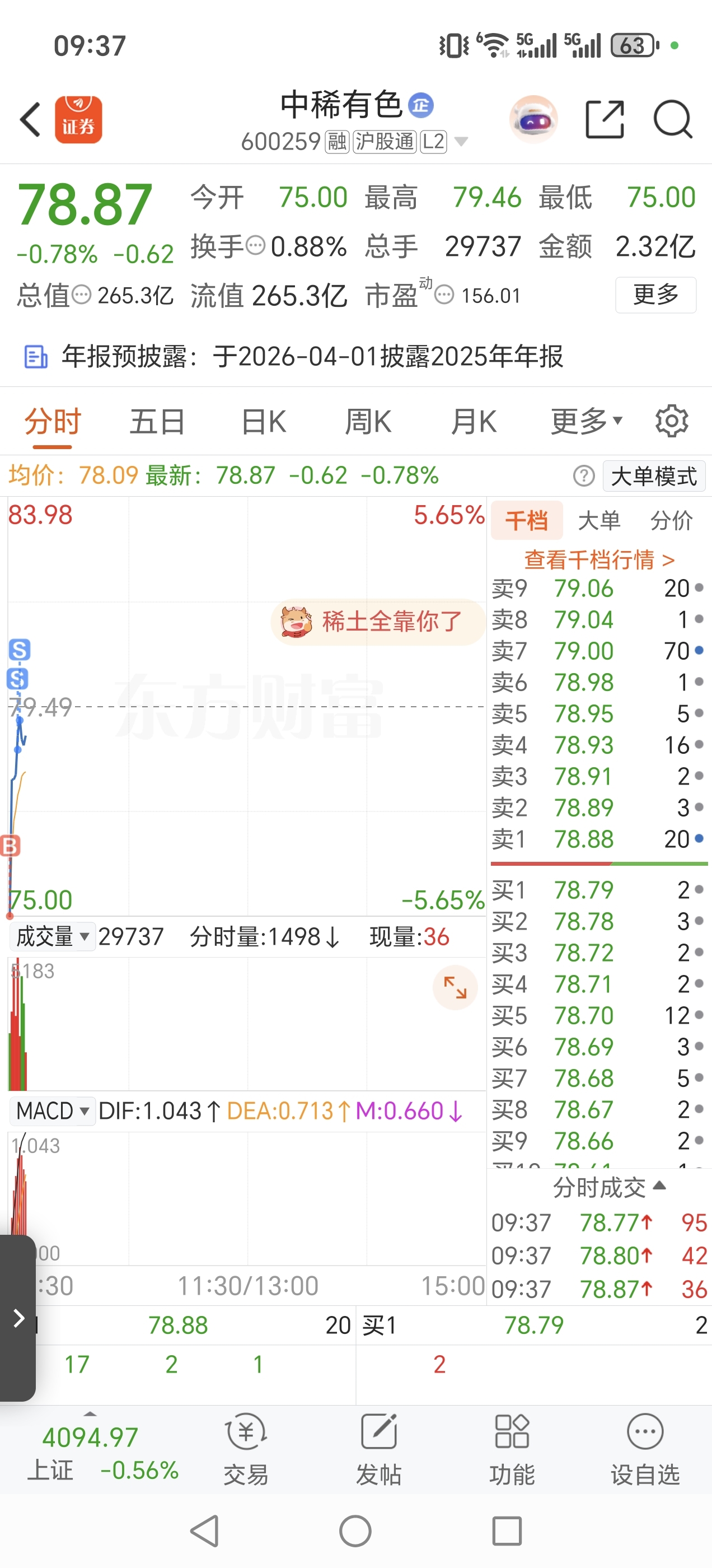 $中稀有色(SH600259)$ 不好意思!又割了主力一把。吼吼吼