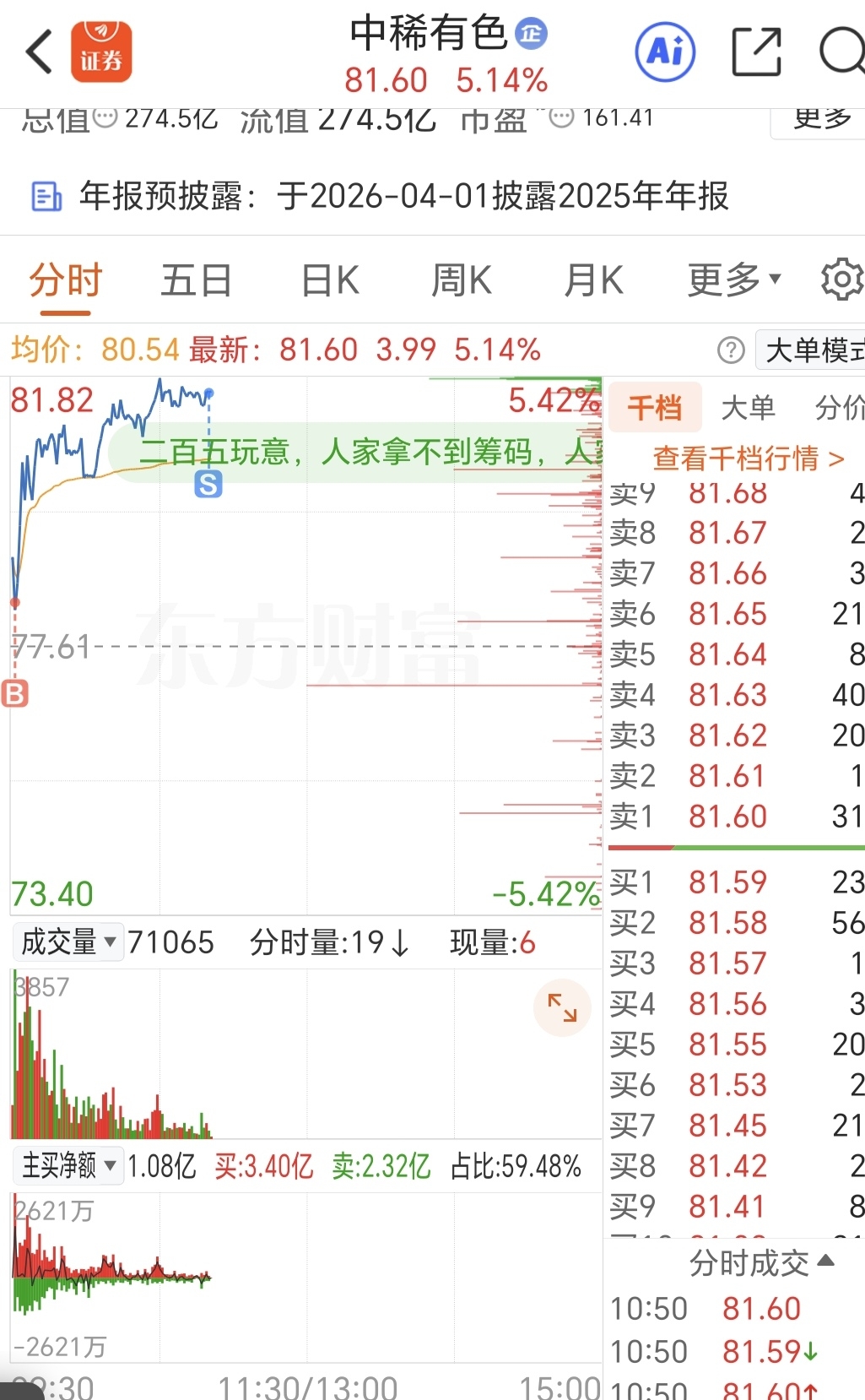 $中稀有色(SH600259)$ 看主力继续表演,极至枯竭的盘面。装不到几时。