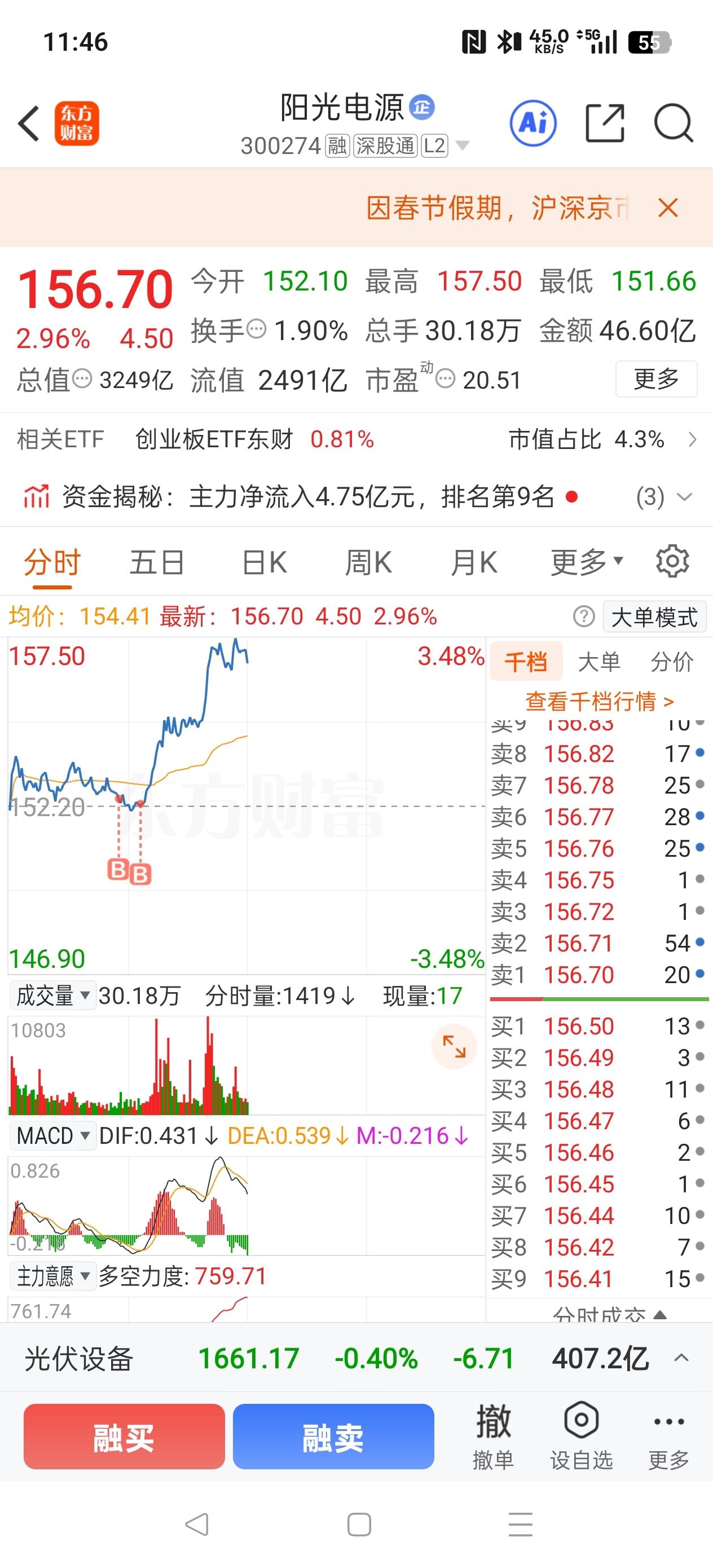 今天的操作,感觉中稀有色主力不给力了,先减100手出来加仓士兰微和阳光电源。