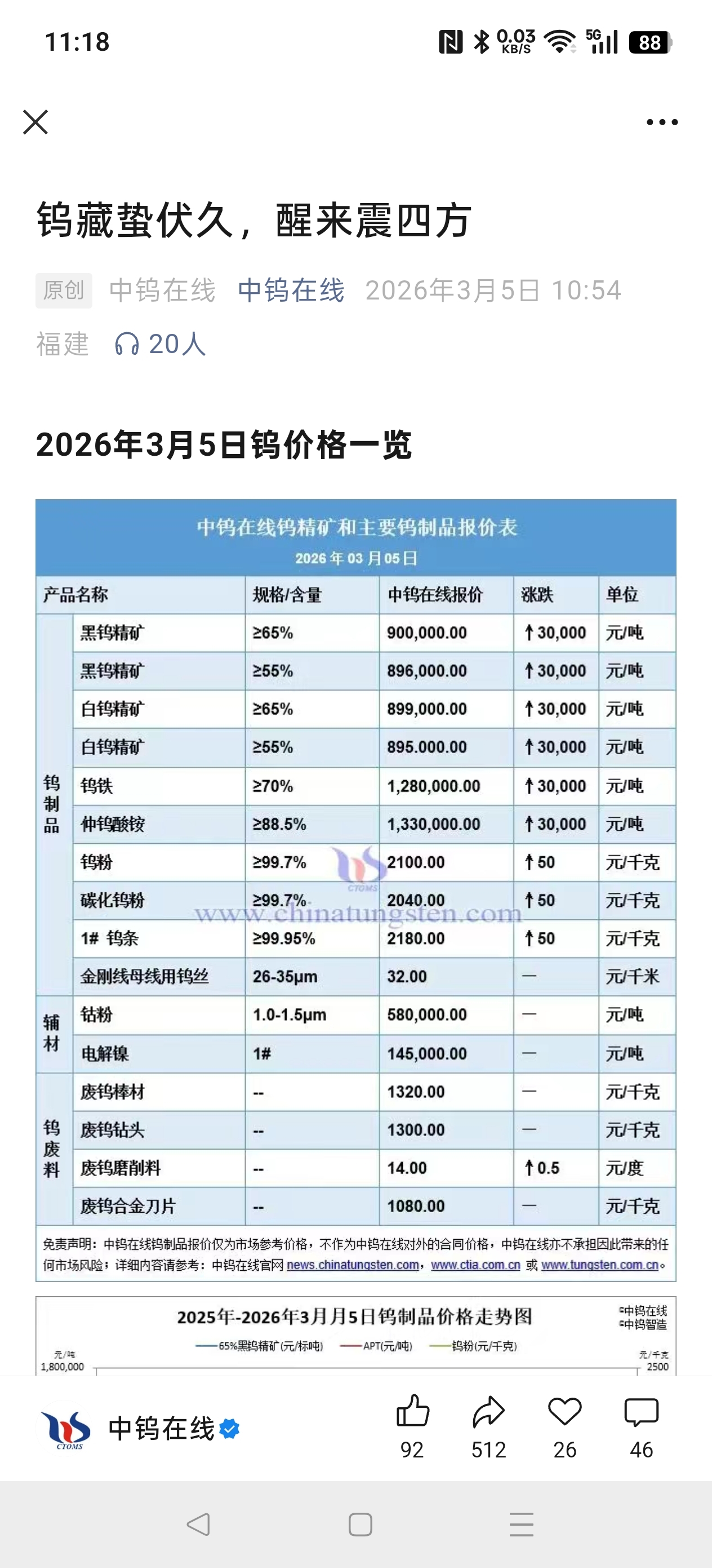 $中稀有色(SH600259)$ 钨简直是无敌了,钨矿正式突破90万,去年最低16万每吨。