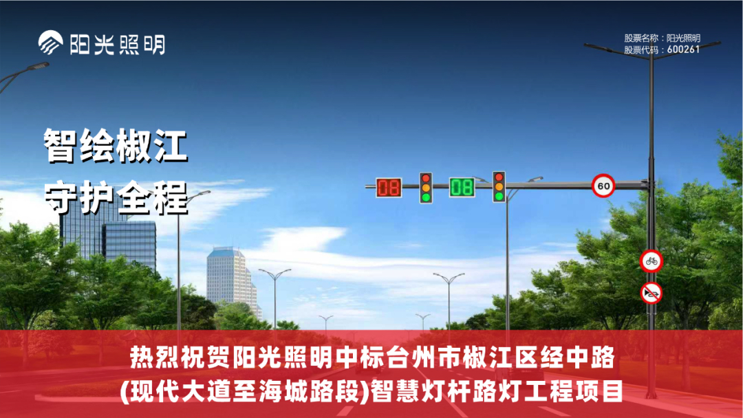 $阳光照明(SH600261)$ 喜报|热烈祝贺阳光照明中标台州市椒江区经中路(现代大道至海城路段)智慧灯杆路灯工程项目