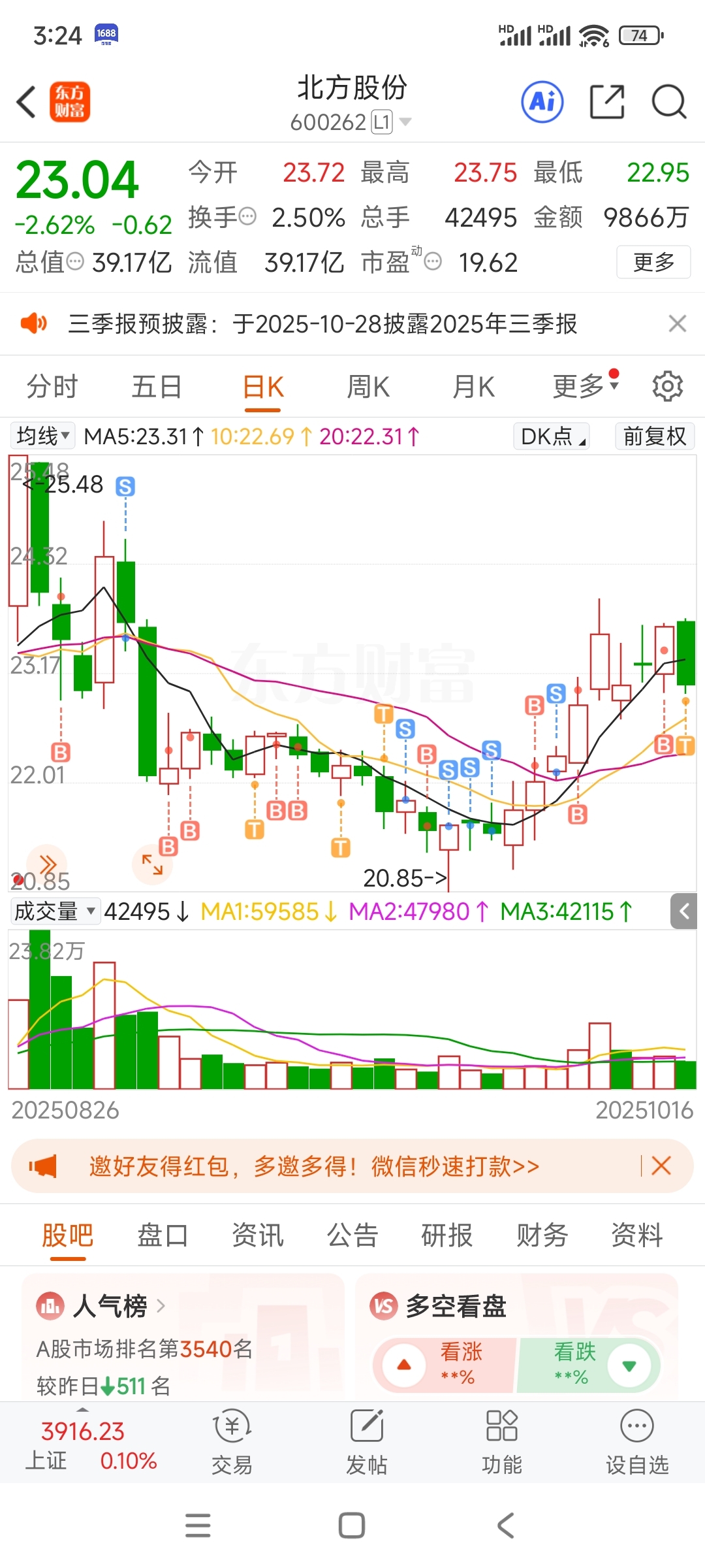 $北方股份(SH600262)$ 不涨可能又和我一样不甘心的进来了。