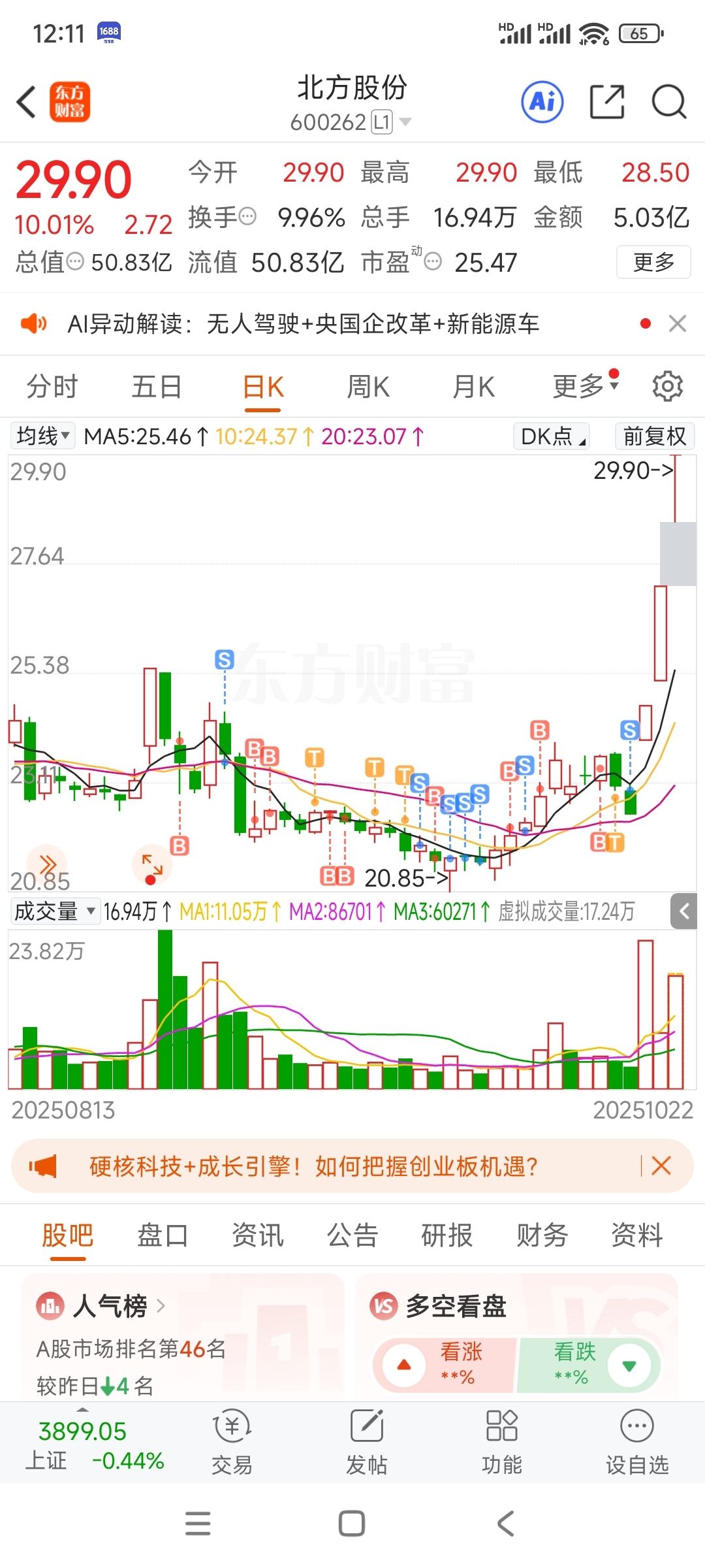 $北方股份(SH600262)$ 星期五走了,今天早上心里有点扭曲了,到处去追高,今天是这个月亏损最大的一天。明天如果再亏到我底线,决定退出股市,没有这个命。