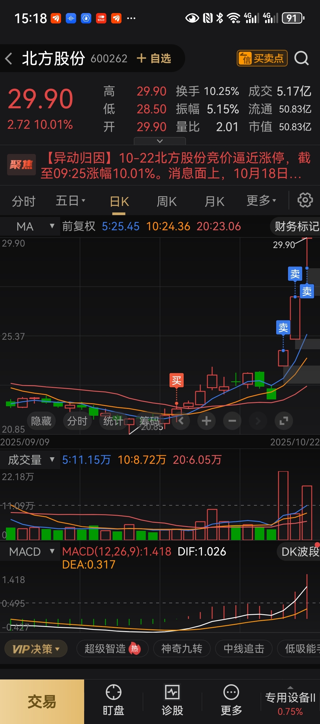 $北方股份(SH600262)$ 难以掩饰对自己买点精准的幸运。继续冲板!