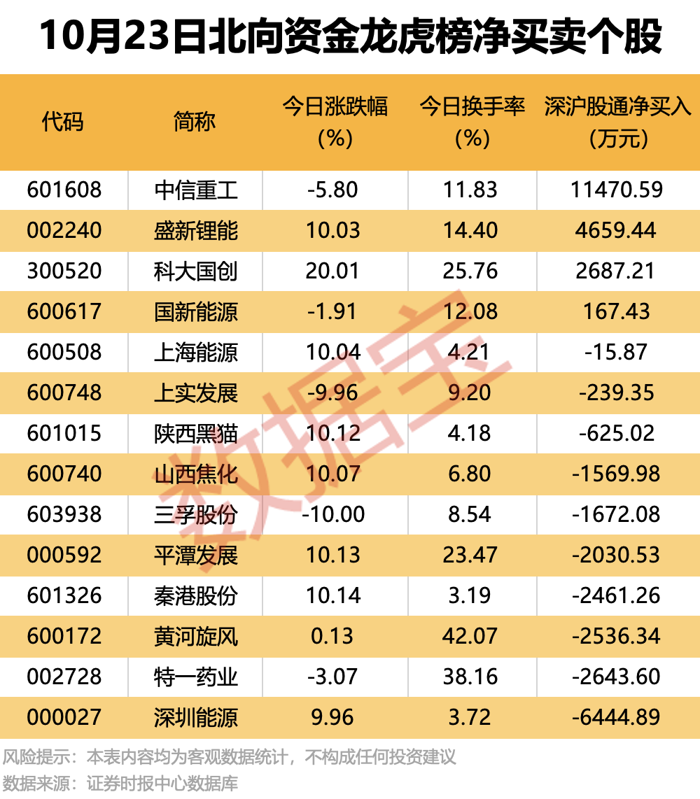 今日龙虎榜现身个股中,4股获北向资金净买入。净买入居首的是中信重工,金额为1.15亿元;盛新锂能、科大国创获净买入均超2600万元。