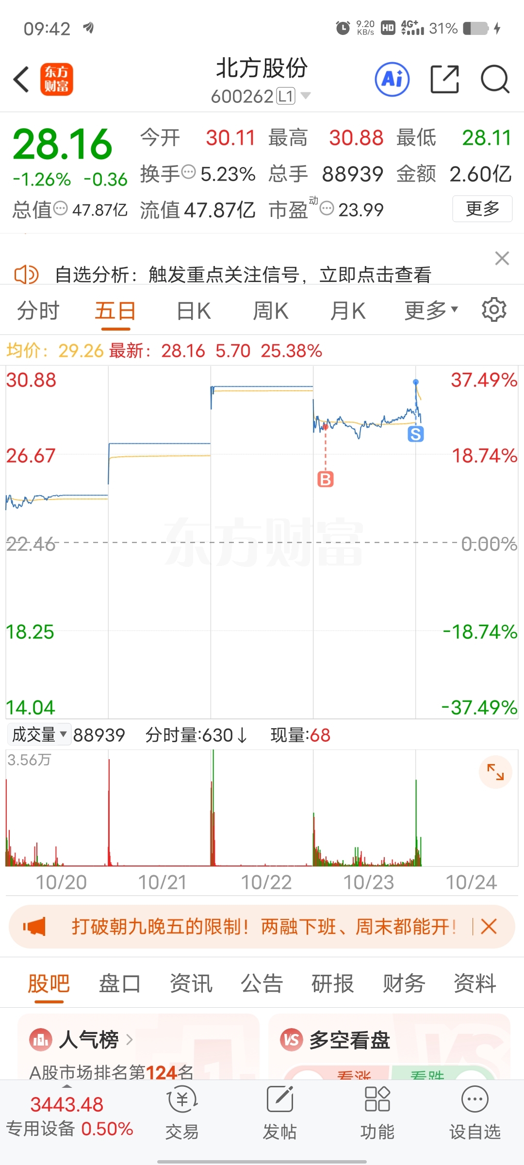 $北方股份(SH600262)$ 下班 考虑要不要做t尾盘再看 情绪马上进入冰点又是好机会,分歧越大修复愈大