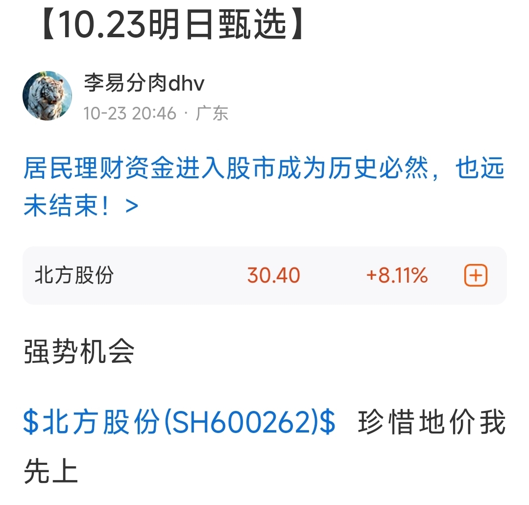 $北方股份(SH600262)$ 我叫你上,你说高了劝我快跑