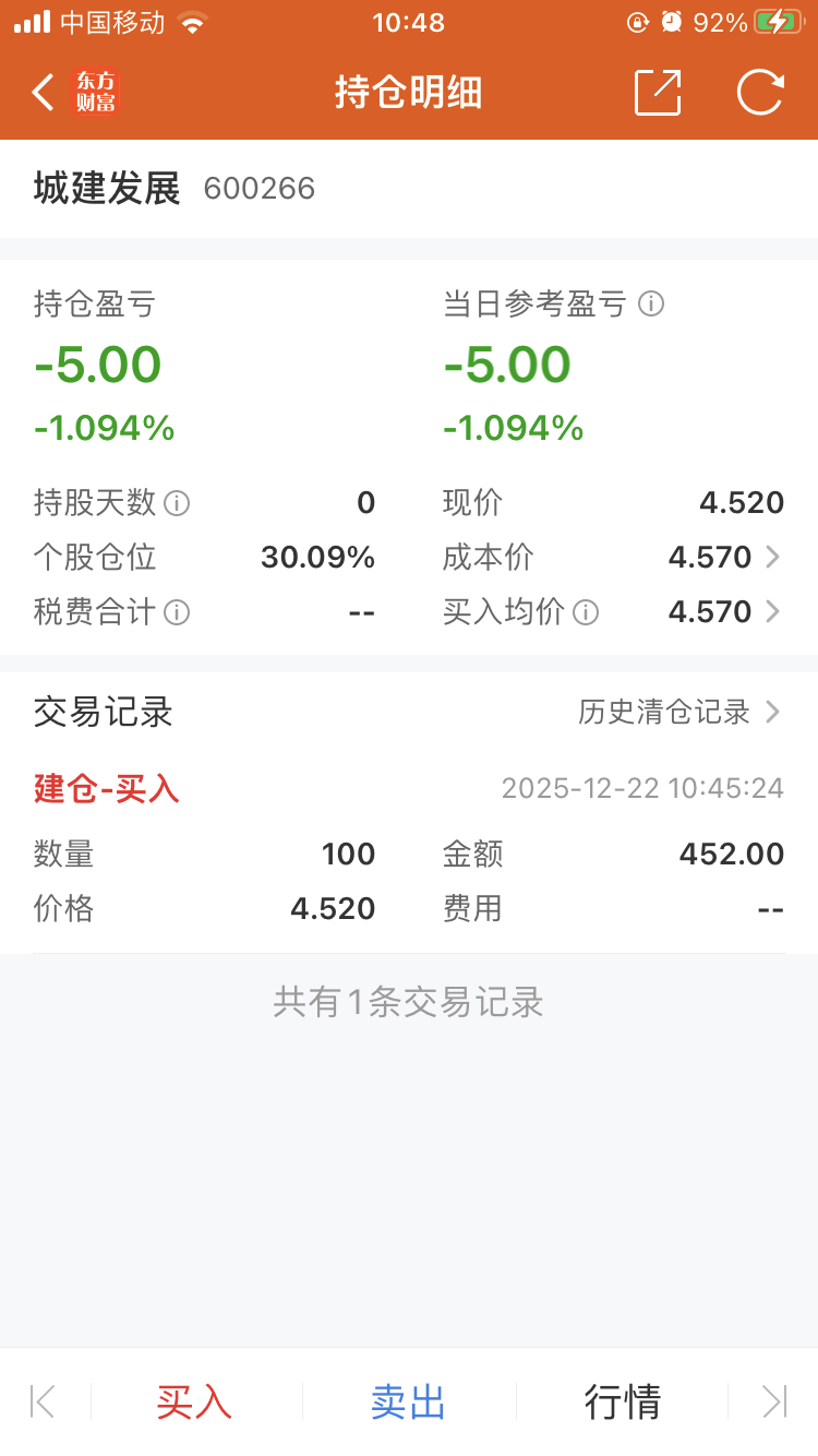 $城建发展(SH600266)$ 怎么理解啊,进去直接亏钱,是不是系统搞错了