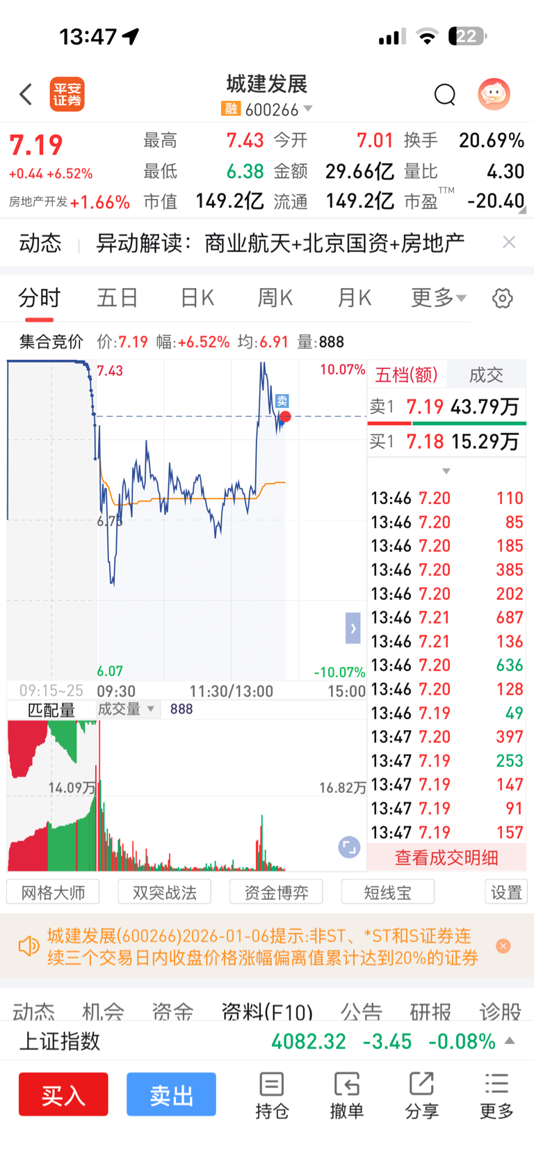 $城建发展(SH600266)$ 买盘没量了,我走了祝各位发财