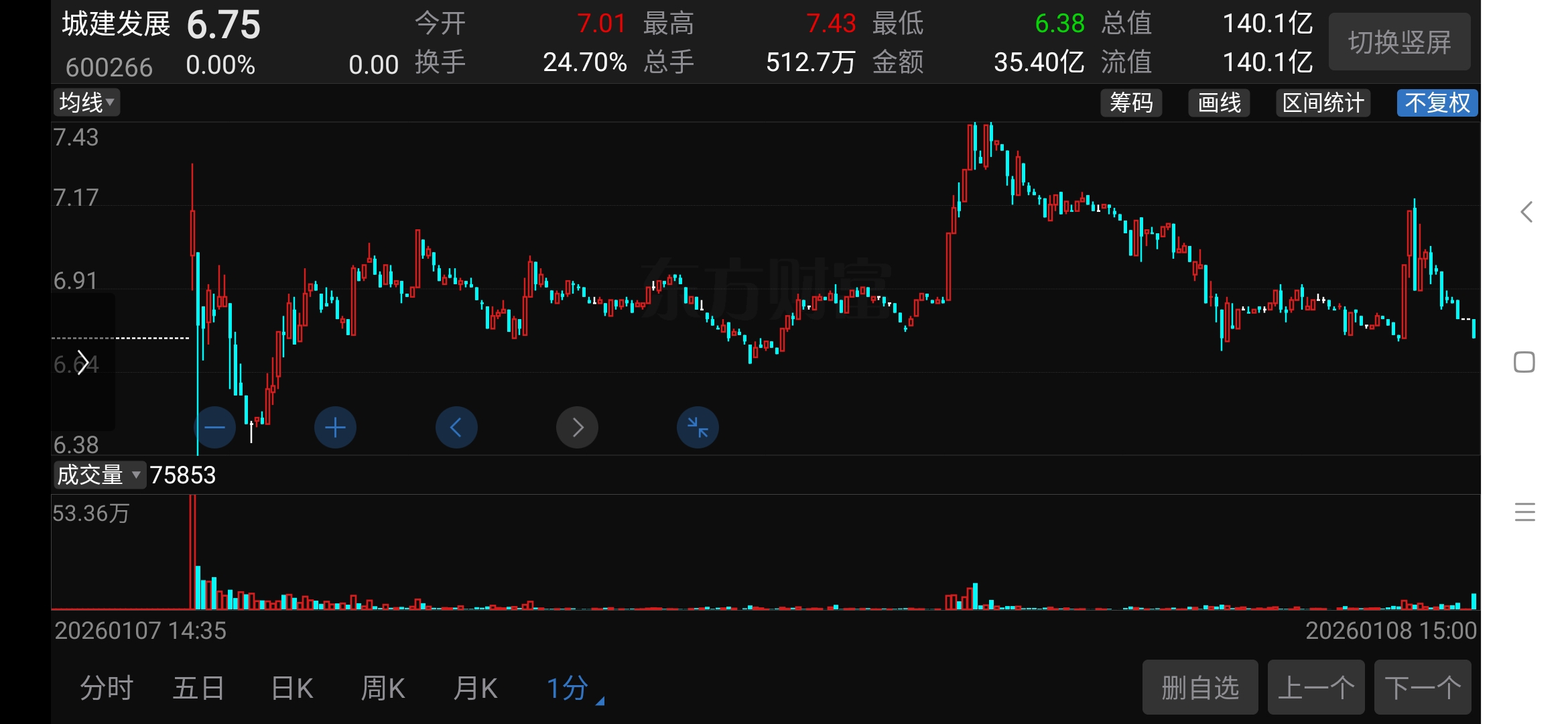 $城建发展(SH600266)$ 一分钟K线图看主力意愿