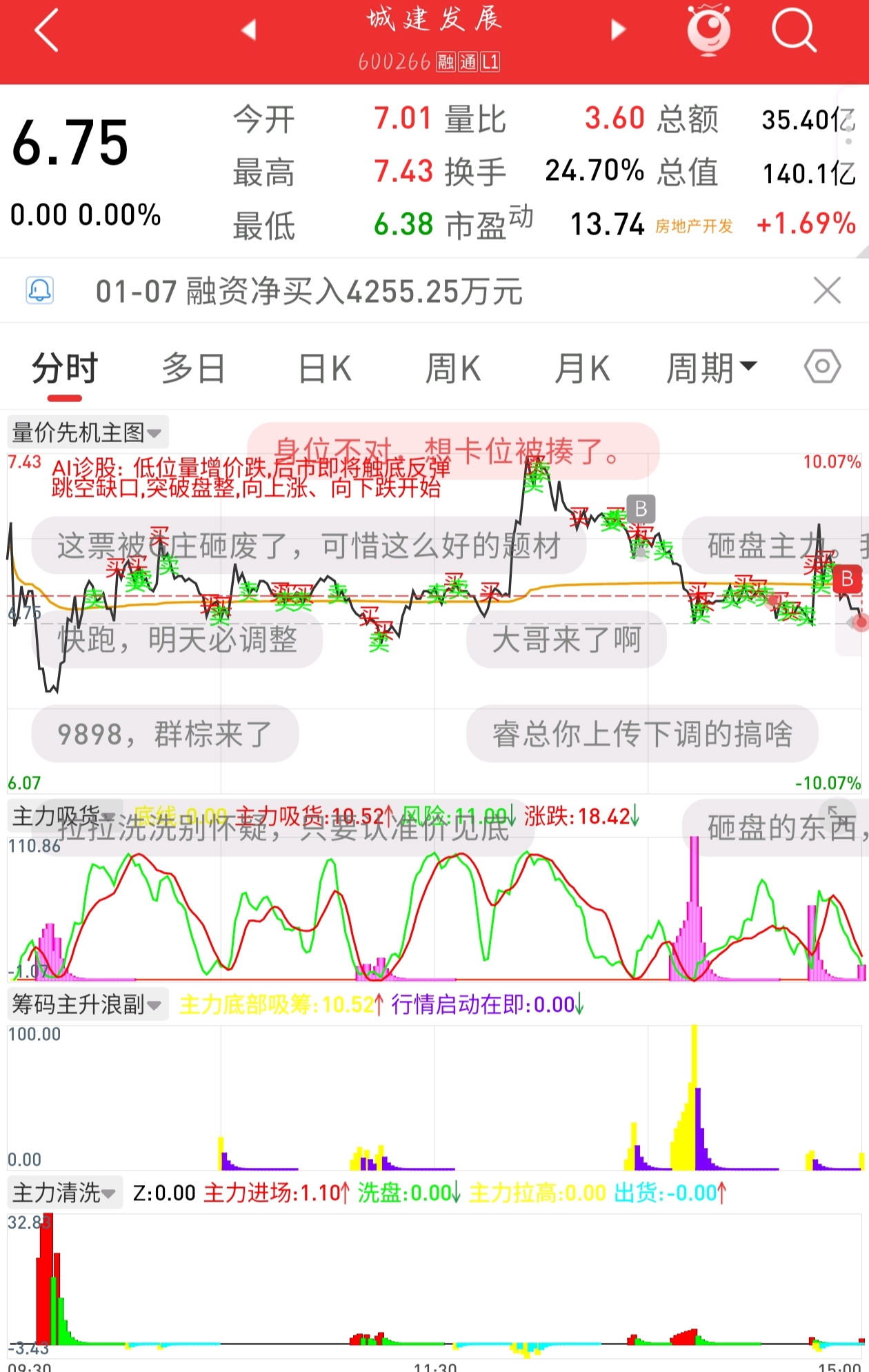 $城建发展(SH600266)$ 不慌明天最起码不会A杀,还是有主力在吸筹,涨说不上,但跌肯定不会跌太狠