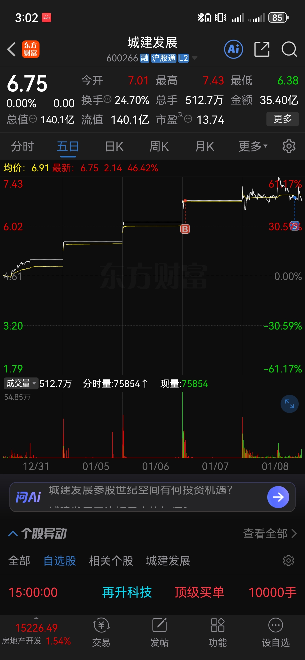 $城建发展(SH600266)$ 挣钱没买