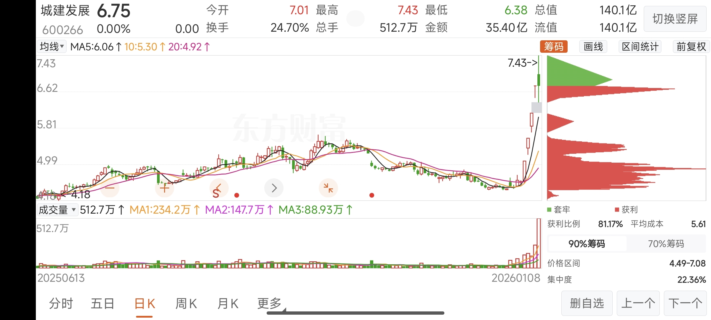$城建发展(SH600266)$ 慌个毛,底部筹码都在锁仓,大资金都看好,这才哪到哪?航天是主线,是最强风口和题材,底部起来才涨了多少?随便你们怎么折腾,坚决看到8块,最少8块一定会到。