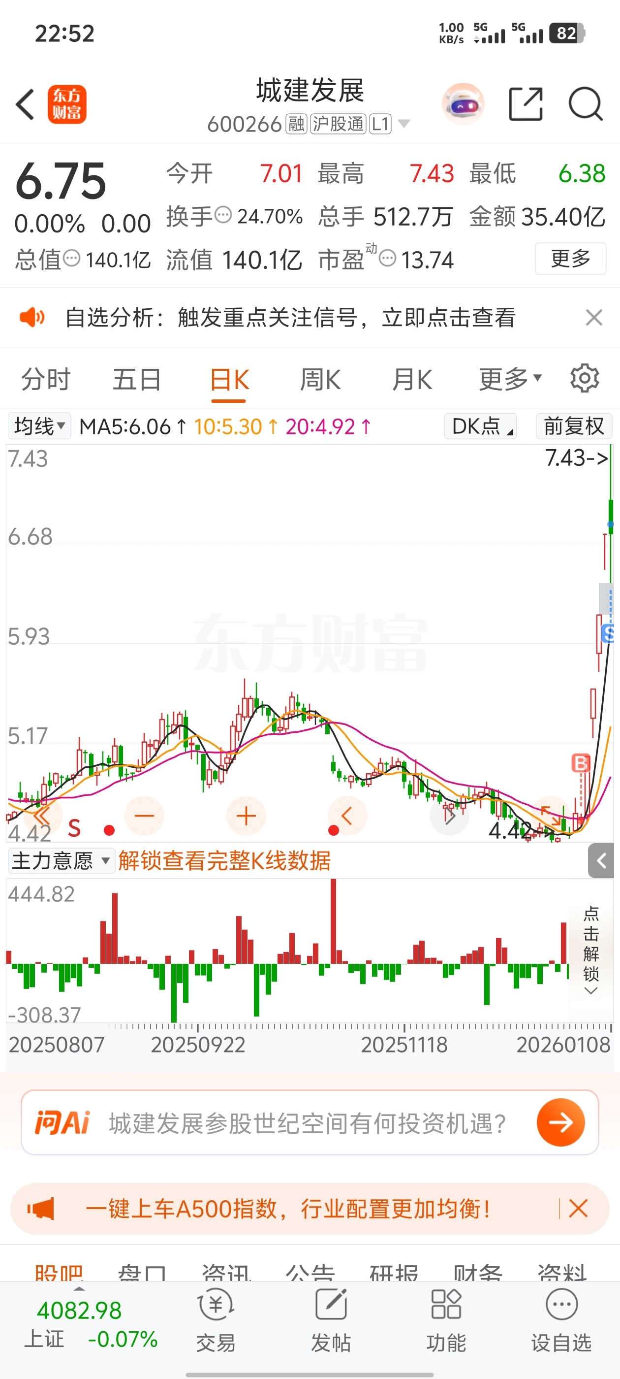 $城建发展(SH600266)$ 对不起我是那个没格局的人今天卖在了开盘价上,在航发的时候也是卖在了第一个跌停板,希望在车上的兄弟还能吃大肉