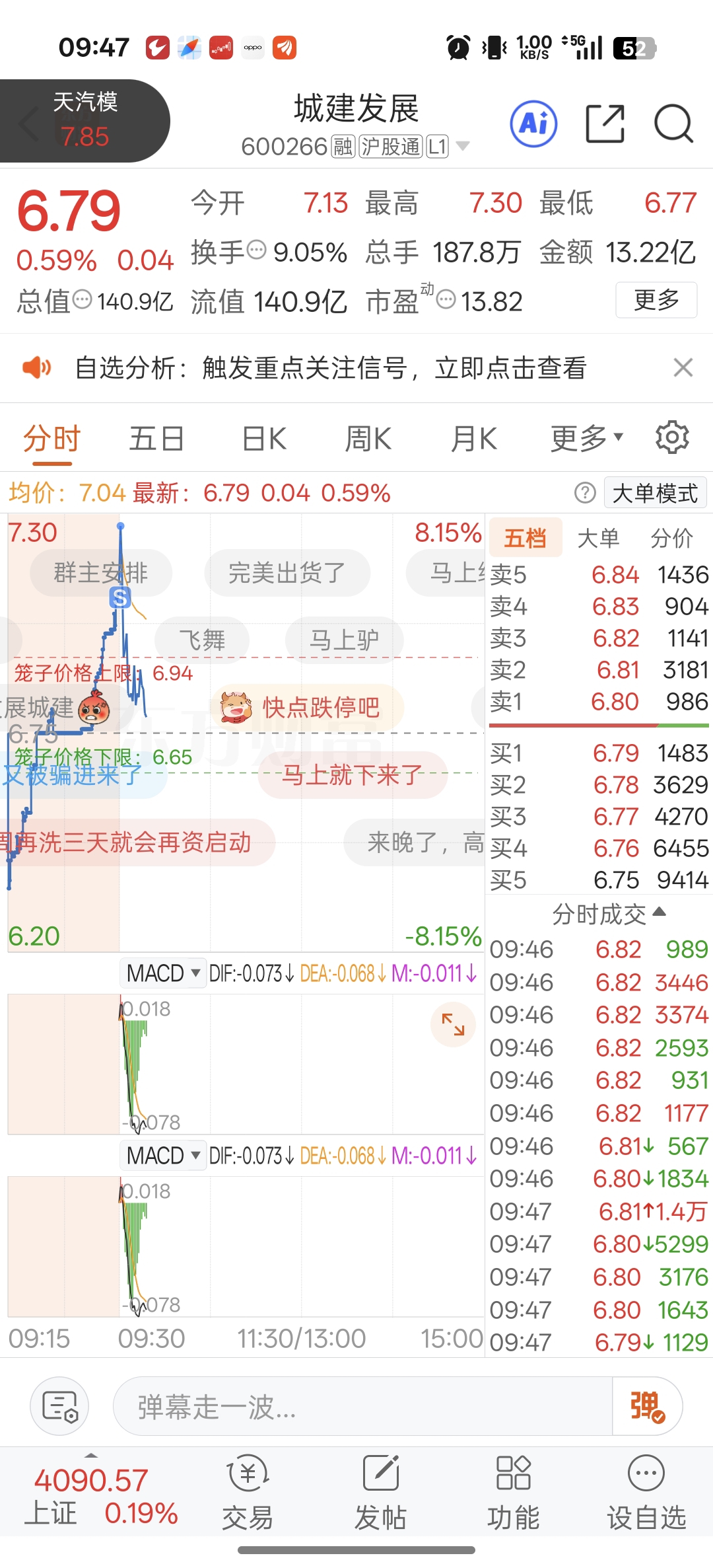 $城建发展(SH600266)$ 忙事情去了,喜忧参半,单调下班