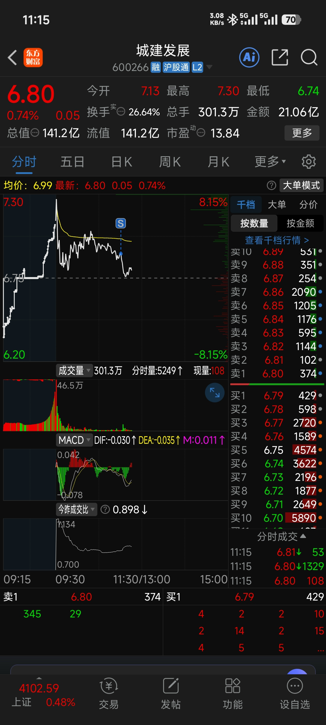 $城建发展(SH600266)$ 我清仓了,不玩了,看看月线图。个几个月大涨后,一路下跌。后续走势不好说了。#股市怎么看# 愿意格局的,看好那8%投资航天股的。因为他沾了点边。我不想格局了。好票那么多,玩其他的