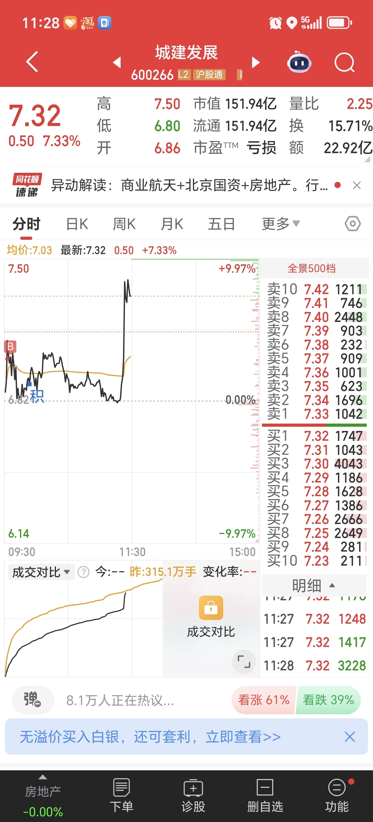 $城建发展(SH600266)$ 兄弟们!我加仓了,助力了哈!