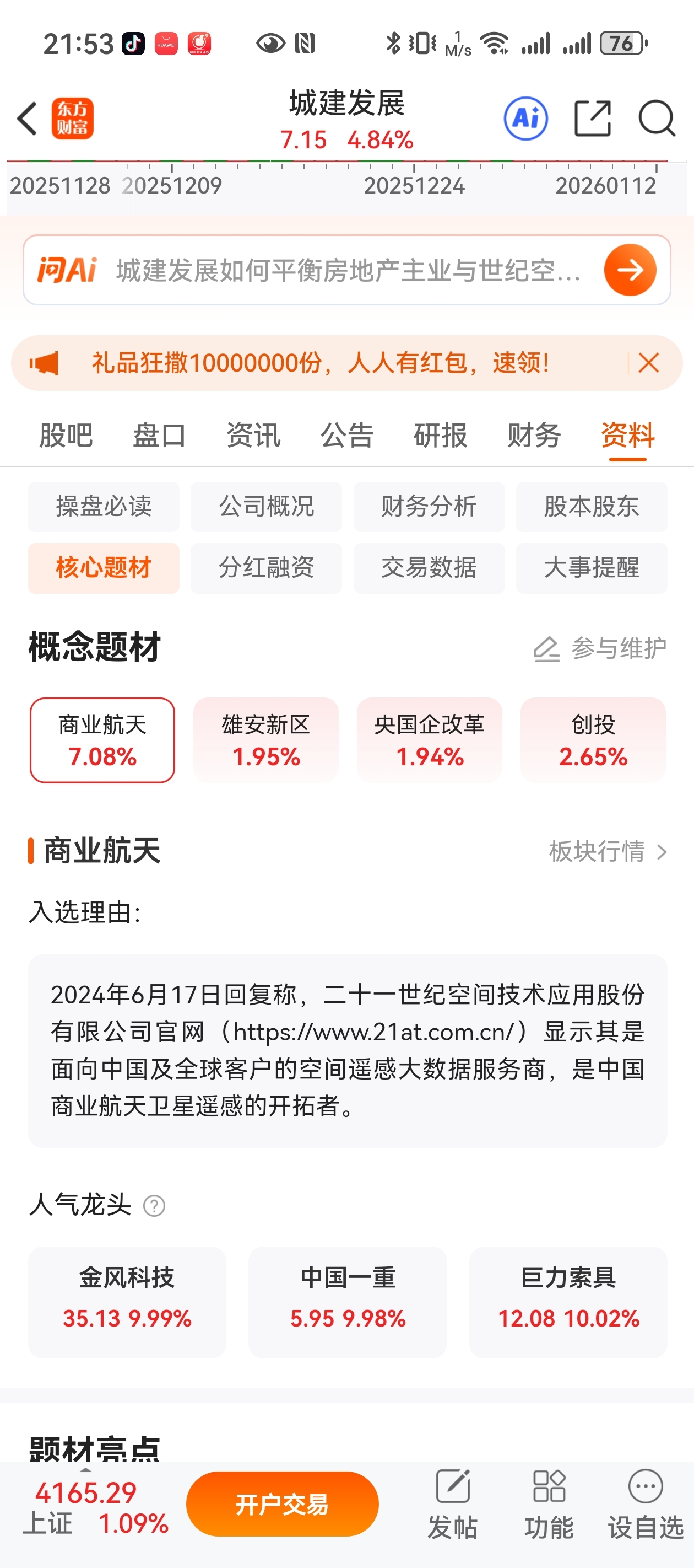$城建发展(SH600266)$ 刚发现,城建发展在东方财富加上了了商业航天概念