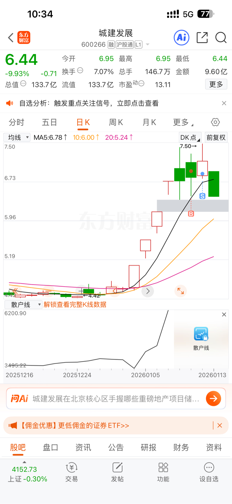 $城建发展(SH600266)$ 昨天短线成功逃顶,散户贪婪我恐慌