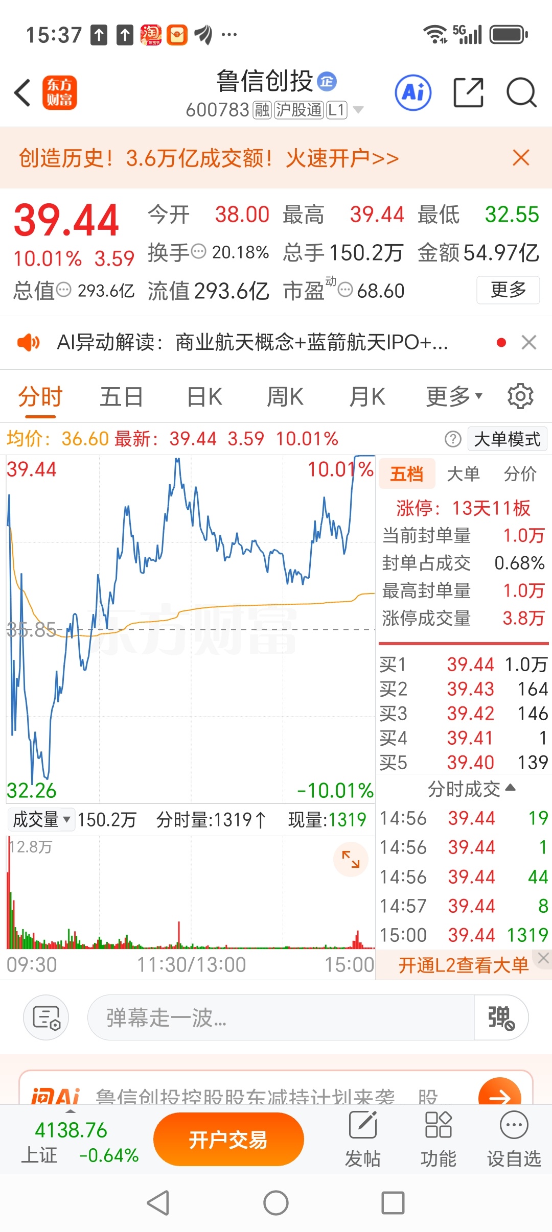 鲁信创投继续涨停,城建旗下两大创投平台中科招商创投、芜湖京城创投也做得非常出色,股权投资收益将持续增多。