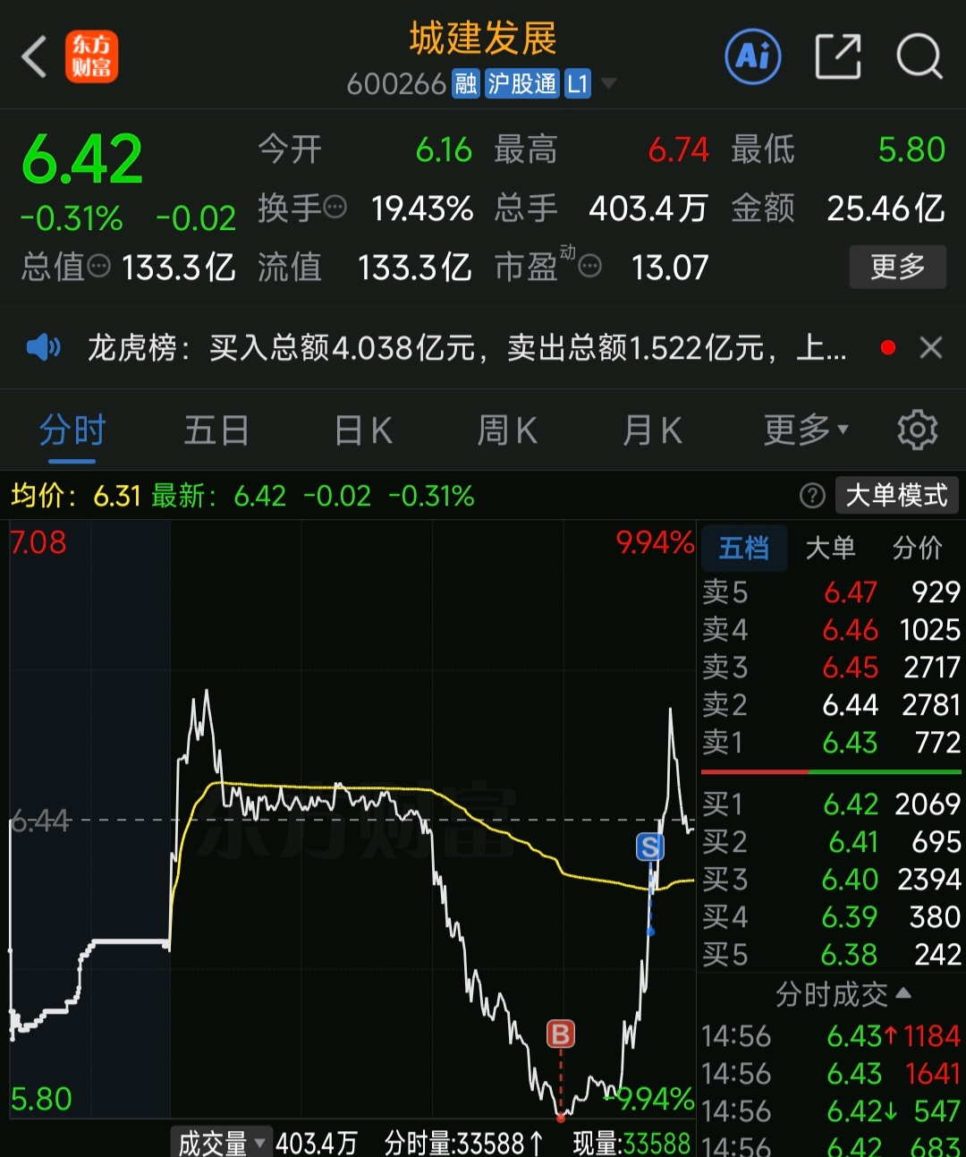 $城建发展(SH600266)$ 挂单5.8,没想到还真到了,这个T卖早了